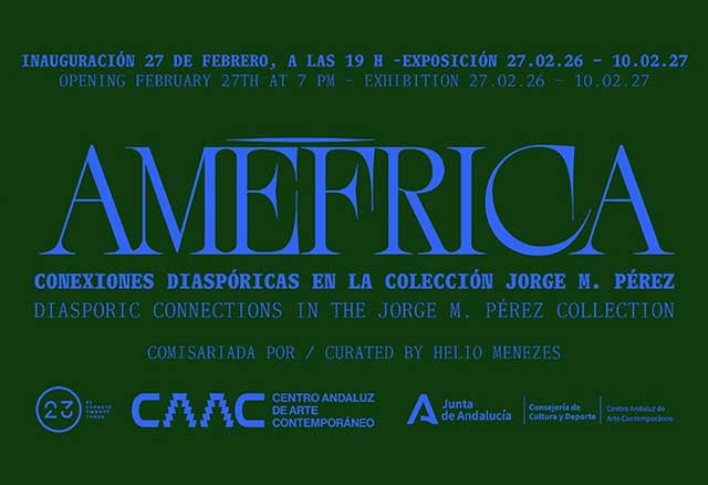 OnSevilla. Entre el viernes 27 de febrero de 2026 y el domingo 10 de enero de 2027 estará abierta al público la exposición "Améfrica. Conexiones diaspóricas en la colección Jorge M. Pérez" en el Claustrón Norte y el Claustrón Este 1 del Centro Andaluz de Arte Contemporáneo (CAAC) de Sevilla. En ella se podrán ver piezas de artistas americanos y africanos contemporáneos seleccionados por el comisario brasileño Hélio Santos Menezes. La muestra es una coproducción del centro sevillano y El Espacio23 de Miami. Consulta la agenda completa de exposiciones en Sevilla.