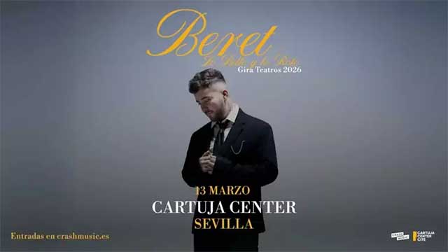 OnSevilla. El viernes 13 de marzo de 2026 se ha programado un concierto de Beret en el auditorio del Cartuja Center CITE de Sevilla. El músico sevillano Francisco Javier Álvarez Beret, nacido el 2 de julio de 1996, publicó su tercer trabajo discográfico "Lo bello y lo roto" a finales del mes de noviembre de este año. En él ha contado con la colaboración de artistas como SFDK, Diegote y Domelipa, entre otros. La actuación en la capital andaluza se enmarca dentro de la gira de presentación del disco. Consulta la agenda completa de conciertos en Sevilla.