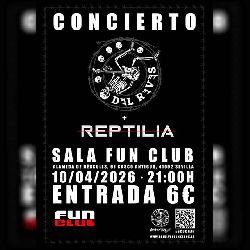 El viernes 10 de abril de 2026 en la sala FunClub de Sevilla se ha programado un concierto con un cartel doble formado por las bandas sevillanas Reptilia y Del Revés.