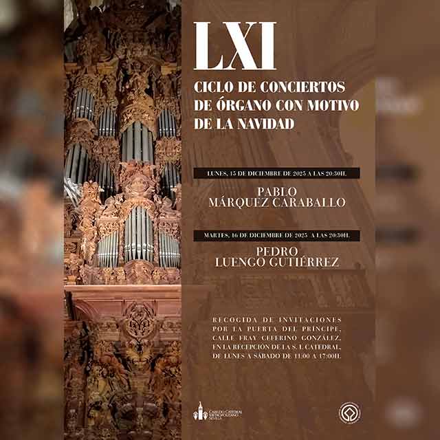 OnSevilla. El lunes 15 y el martes 16 de diciembre de 2025 se podrá asistir a los conciertos de la cuadragésima primera edición del Ciclo de Conciertos de Órgano de Navidad de la Catedral de