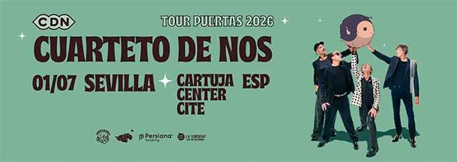OnSevilla. El miércoles 1 de julio de 2026 estará en concierto Cuarteto de Nos en el auditorio del Cartuja Center CITE de Sevilla. El grupo de rock uruguayo, fundado a mediados de los años ochenta del pasado siglo y formado actualmente por Roberto Musso, Álvaro Pintos, Gustavo Antuña y Santiago Marrero, presentará su nuevo trabajo discográfico titulado "Puertas", con el que están de gira desde el pasado mes de junio. Se trata del décimo octavo álbum de estudio de su trayectoria musical y fue publicado en mayo de 2025. Consulta la agenda completa de conciertos en Sevilla.