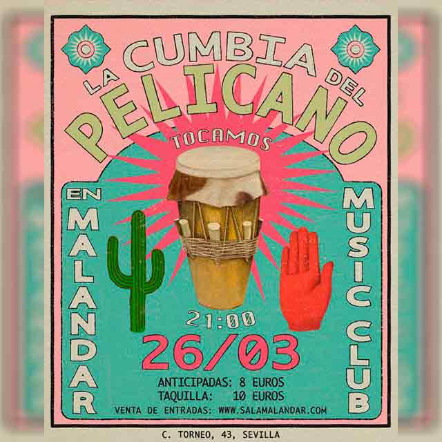 Qué: el jueves 26 de marzo de 2026 se ha programado un concierto de la banda La Cumbia del Pelícano en la Sala Malandar de Sevilla. El estilo musical de la formación sevillana es la cumbia colombiana a la que le añaden la influencia de otros ritmos tropicales. Consulta la agenda completa de conciertos en Sevilla.