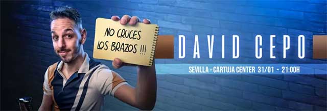 OnSevilla. El sábado 31 de enero de 2026 estará actuando David Cepo en el auditorio del Cartuja Center CITE de Sevilla. El humorista madrileño, nacido en el año 1988, se ha dado a conocer en las redes sociales. Presentará su espectáculo "No cruces los brazos (que no te entran los chistes)" que fue estrenado en el mes de diciembre de 2022. La propuesta no está recomendada para menores de 16 años y tiene una duración aproximada de una hora y cuarto. Consulta la cartelera de espectáculos en Sevilla.