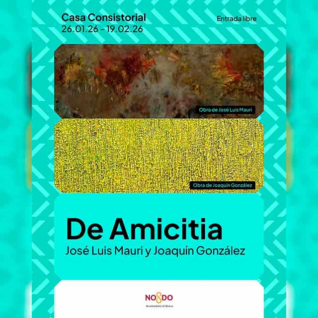 Qué: del lunes 26 de enero al jueves 19 de febrero de 2026 se podrá visitar la exposición "De amicitia" en el Ayuntamiento de Sevilla. Los artistas José Luis Mauri y Joaquín González se inspiran en el tratado de Cicerón del título para crear las treinta y una obras presentes en la muestra. Consulta la agenda completa de exposiciones en Sevilla.