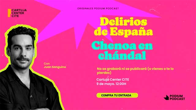 OnSevilla. El sábado 9 de mayo de 2026 se ha programado "Delirios de España. Chenoa en chándal" en el auditorio del Cartuja Center CITE de Sevilla. Se trata del espectáculo en directo del pódcast del periodista y escritor Juan Luis Sanguino Santorio, más conocido como Juan Sanguino. En él se centra en eventos de la historia reciente del país relacionados con la cultural popular, la sociedad y la política. Se estrenó en el mes de octubre de 2023 y es una producción original de Podium Podcast. Consulta la agenda con otras actividades en Sevilla.