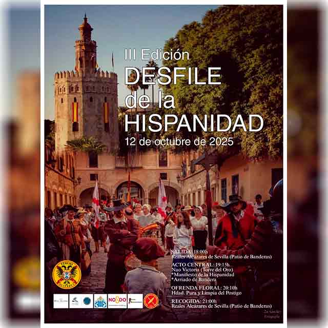 Qué: el domingo 12 de octubre de 2025 tendrá lugar la tercera edición del "Desfile de la Hispanidad" por diferentes calles de la ciudad de Sevilla. El acto está organizado por el Tercio de Olivares y forma parte de la programación del Octubre Hispanoamericano en Sevilla 2025. Tendrá su punto de partida y llegada en el Patio de Banderas de los Reales Alcázares. Consulta la agenda con otras actividades en Sevilla.