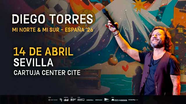 OnSevilla. El martes 14 de abril de 2026 estará en concierto Diego Torres en el auditorio del Cartuja Center CITE de Sevilla. El músico y actor argentino Diego Antonio Caccia Torres (Buenos Aires, 1971) acaba de publicar a mediados del mes de noviembre de 2025 su nuevo álbum titulado "Mi norte y mi sur", en el que ha contado con la participación de artistas como Manuel Carrasco y Estopa, entre otros. En su actuación en nuestra ciudad interpretará los temas más conocidos de su carrera y presentará los del nuevo disco en un espectáculo de dos horas de duración. Consulta la agenda completa de conciertos en Sevilla.