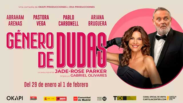 OnSevilla. Del jueves 29 de enero al domingo 1 de febrero de 2026 habrá representaciones de la obra "Género de dudas" en la Sala CITE del Cartuja Center CITE de Sevilla. Se trata de un montaje sobre el texto original de Jade-Rose Parker dirigido por Gabriel Olivares. La pareja protagonista está interpretada por los actores Pastora Vega y Pablo Carbonell, que estarán acompañados sobre el escenario por Abraham Arenas y Ariana Bruguera. El espectáculo de Okapi Producciones e Iria Producciones no está recomendado para menores de 16 años. Consulta la cartelera de teatro en Sevilla.