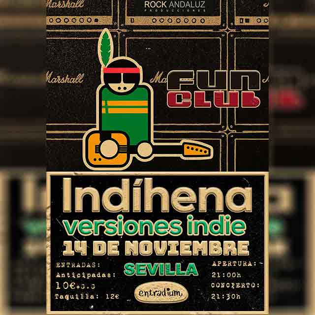 Qué: el viernes 14 de noviembre de 2025 habrá un concierto del grupo Indíhena en la sala FunClub de Sevilla. La banda interpreta versiones de temas indie de artistas como Los Planetas, Arde Bogotá, Siloé y Viva Suecia, entre otros. Consulta la agenda completa de conciertos en Sevilla.