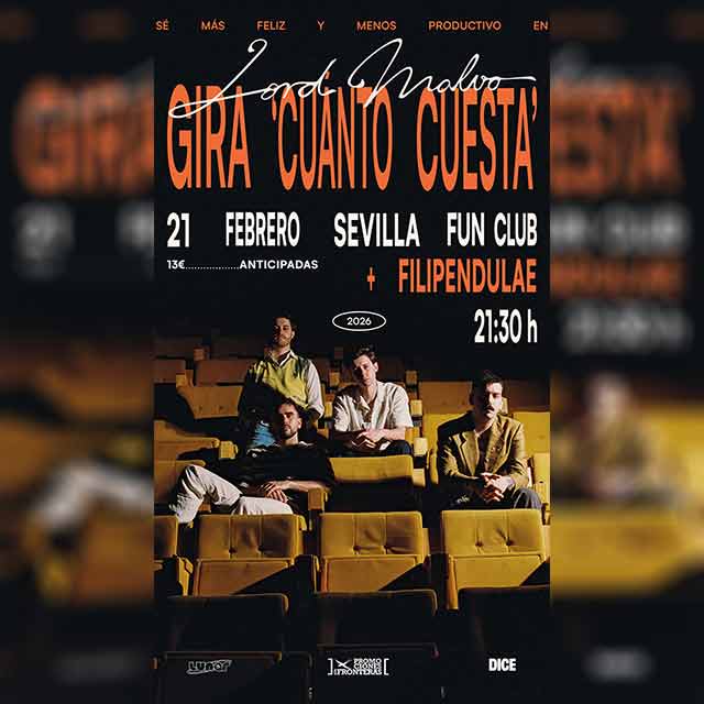 Qué: el sábado 21 de febrero de 2026 habrá un concierto de Lord Malvo y Filipendulae en la Sala FunClub de Sevilla. La banda malagueña está de gira con "Cuánto cuesta", su segundo trabajo discográfico. Actuará como telonero el sevillano Filipendulae. Consulta la agenda completa de conciertos en Sevilla.