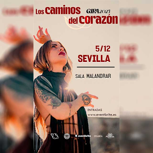 Qué: el viernes 5 de diciembre de 2025 habrá un concierto de María del Tango en la Sala Malandar de Sevilla. La artista granadina María Esperanza García Martínez, nacida en el año 1992, presentará su primer disco de estudio "Entre dos mundos", recientemente publicado. La gira se ha titulado "Los caminos del corazón". Consulta la agenda completa de conciertos en Sevilla.