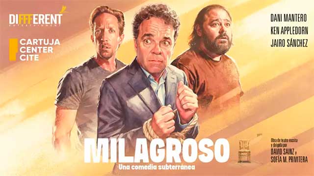 OnSevilla. El jueves 5 y el domingo 15 de febrero de 2026 habrá representaciones de la obra de teatro "Milagroso. Una comedia subterránea" en la Sala CITE del Cartuja Center CITE de Sevilla. El montaje está escrito y dirigido por David Sainz y Sofía M. Privitera e interpretado por los actores Dani Mantero, Ken Appledorn y Jairo Sánchez. El espectáculo es una producción de Diffferent Entertainment que tiene una duración de una hora y quince minutos y no está recomendado para menores de 16 años. Consulta la cartelera de teatro en Sevilla.