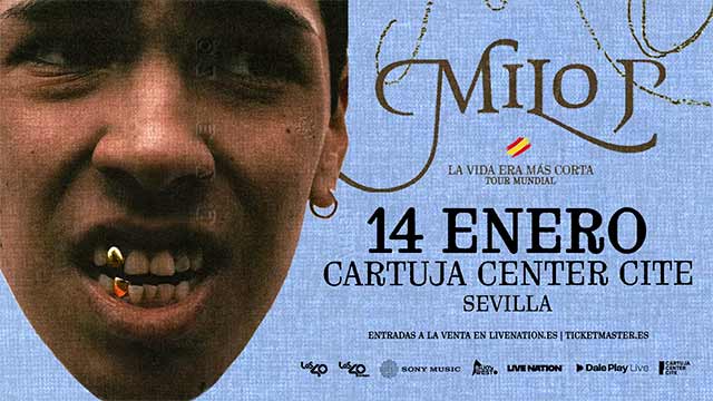 OnSevilla. El miércoles 14 de enero de 2026 estará en concierto Milo J en el auditorio del Cartuja Center CITE de Sevilla. El rapero argentino Camilo Joaquín Villarruel, más conocido como Milo J, nació en Buenos Aires en el año 2006. Se dio a conocer internacionalmente con temas como "Milagrosa" y "Rara Vez" y su colaboración con Bizarrap. La actuación en la capital hispalense forma parte de la gira "La vida era más corta. Tour mundial", la presentación del disco homónimo publicado el pasado mes de septiembre de 2025 y en el que han participado músicos como Silvio Rodríguez y Mercedes Sosa, entre otros. Consulta la agenda completa de conciertos en Sevilla.