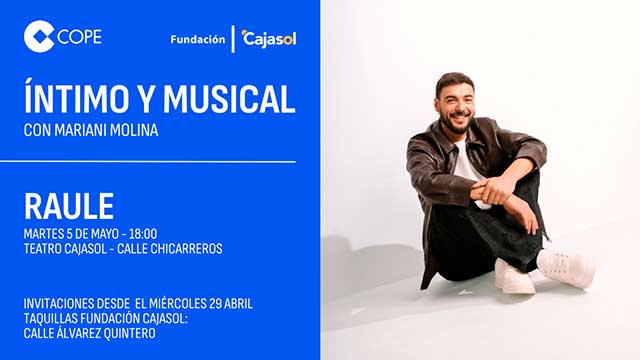 Qué: el martes 5 de mayo de 2026 habrá una nueva cita del ciclo "Íntimo y musical" de COPE en la sede de la Fundación Cajasol en Sevilla. Esta vez el encuentro estará protagonizado por el cantante valenciano Raule (Aldaya, 1997) que será entrevistado por Mariani Molina. Consulta la agenda completa de conciertos en Sevilla.