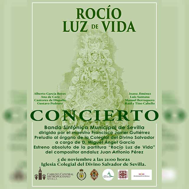 Qué: el miércoles 5 de noviembre de 2025 se ha programado el concierto "Rocío, luz de vida" en la iglesia del Salvador. Será el estreno de esta composición de Juan Antonio Pérez interpretada por la Banda Sinfónica Municipal de Sevilla, que estará acompañada por Joana Jiménez, Alberto García Reyes, Luis Santana, Ana de Caro, Manuel Berraquero, Cantores de Hispalis, Raúl y Tino Cabello y Gustavo Pedrero. Consulta la agenda completa de conciertos en Sevilla.