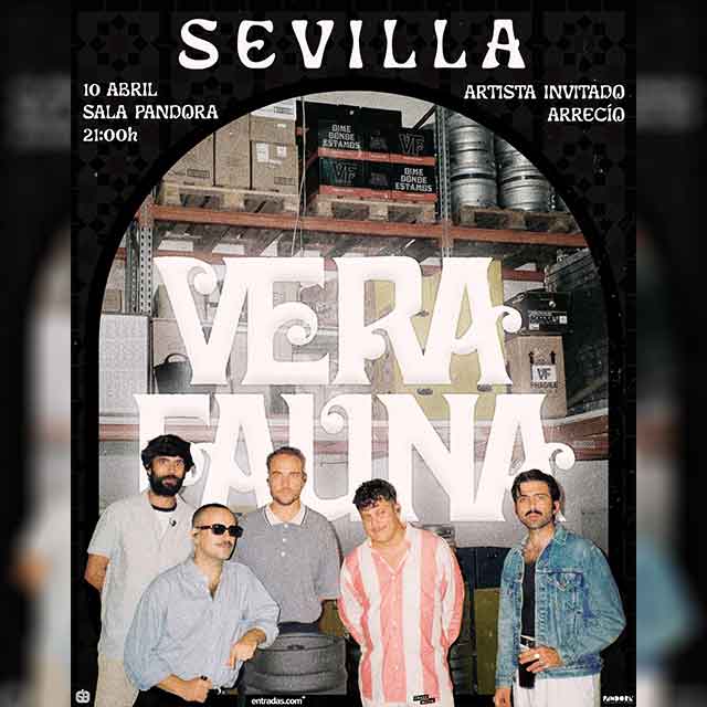 Qué: el viernes 10 de abril de 2026 se podrá asistir al concierto de Vera Fauna en la Sala Pandora de Sevilla. El grupo indie sevillano volverá a actuar con su nuevo trabajo titulado "Dime dónde estamos", publicado en marzo de 2025 y en el que incorporan rock clásico, rap y Rhythm and blues. Como artista invitado actuarán los sevillanos Arrecío (punk). Consulta la agenda completa de conciertos en Sevilla.