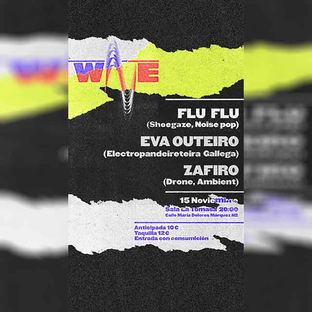 Qué: el sábado 15 de noviembre de 2025 se celebrará el WAVE Fest (festival de músicas emergentes) en la sala La Tomasa de Sevilla. Actuarán las bandas Flu Flu (shoegaze, noise pop), Eva Outeiro (electropandeireteira gallega) y Zafiro (drone, ambient). Consulta la agenda completa de conciertos en Sevilla.