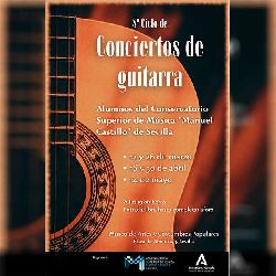 Del jueves 12 de marzo al jueves 14 de mayo de 2026 en el Museo de Artes y Costumbres Populares de Sevilla habrá conciertos de guitarra de alumnos del conservatorio.